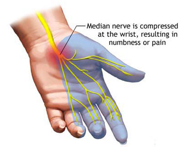 It is caused by the compression of the median nerve as it passes through the carpal tunnel which on three sides is made up of wrist bones and the roof by a strong, broad ligament.